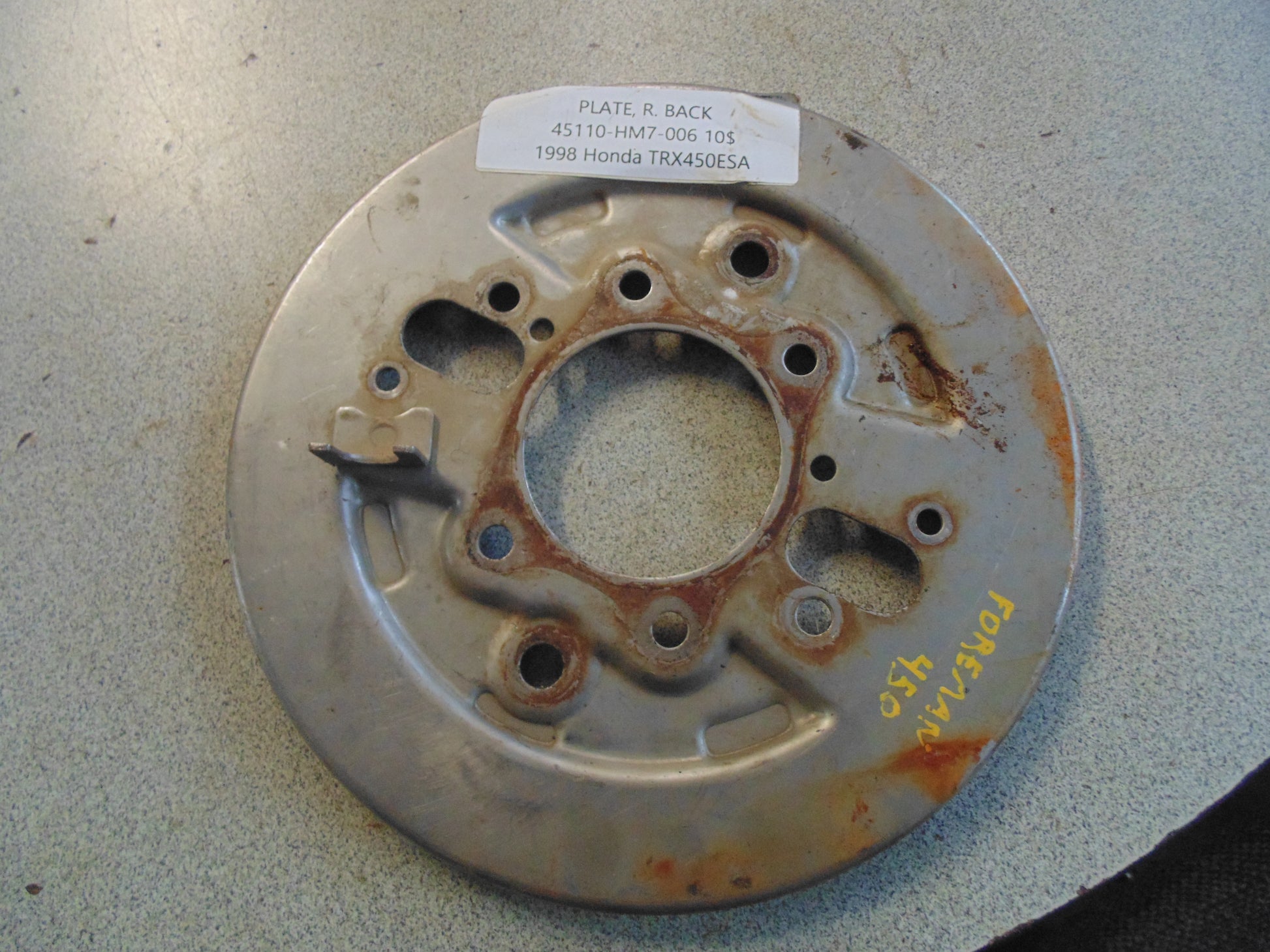 1998 HONDA TRX450ESA PLATE R BACK 45110-HM7-006
