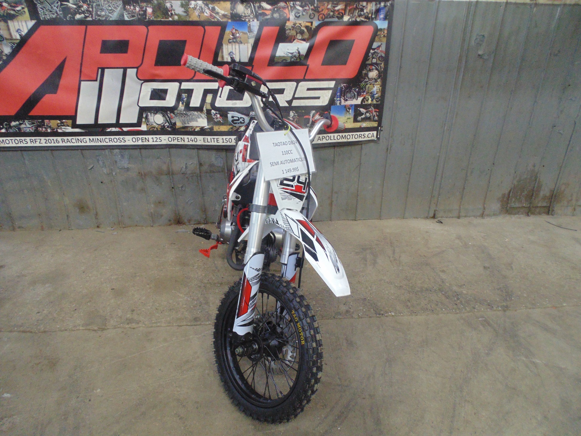 Le DB24 de TaoMotor est un excellent choix pour les jeunes passionnés de motocross, avec une combinaison de puissance et de facilité d’utilisation. Voici un résumé de ce modèle : Détails du produit : Modèle : DB24 de TaoMotor Prix : 1 199,99 $ (avant taxes) Type : Motocross pour enfants Moteur : 110cc, 4 temps, refroidi par air, monocylindre Transmission : Semi-automatique à 4 vitesses (pas d’embrayage) Freins : Disques hydrauliques à l’avant et à l’arrière Vitesse maximale : 30 à 50 km/h Dimensions des roues : 14 pouces à l’avant, 12 pouces à l’arrière Hauteur du siège : 28" (615 mm) Châssis : Triple barre pour une solidité accrue Caractéristiques supplémentaires : Silencieux de performance, démarrage au pied, structure résistante Pourquoi choisir le DB24 ? Adapté aux débutants : Sa transmission semi-automatique et son moteur à faible régime sont parfaits pour les jeunes pilotes qui apprennent à rouler. Robustesse : Le châssis et les freins hydrauliques assurent une grande sécurité et durabilité. Confort et performance : Conçu pour offrir une conduite agréable tout en maximisant les performances. Où nous trouver : Adresse : 3564 boul Frontenac Ouest, Thetford Mines Téléphone : 581-333-4001 Avec plus de 14 ans d'expérience, nous vous offrons un service personnalisé pour vous aider à choisir le meilleur modèle pour vos besoins.